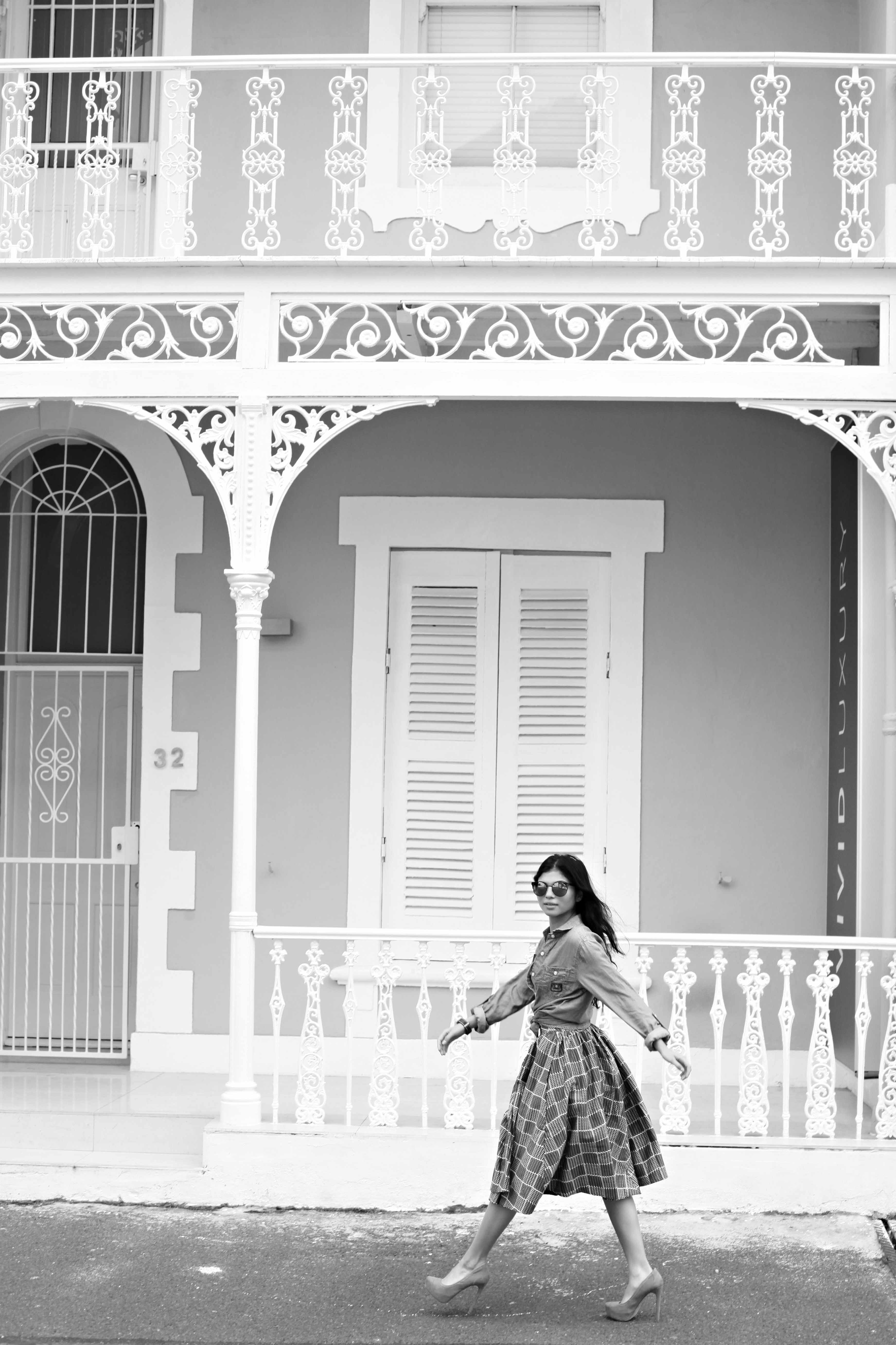 Aisha and I shot this look against the most beautiful patio in the CBD. My favorite piece of this outfit was the mirrored lensed sunnies from Quay Australia. The sunnies inspired me in post production as I created a complimentary splash of colour in some of the images.