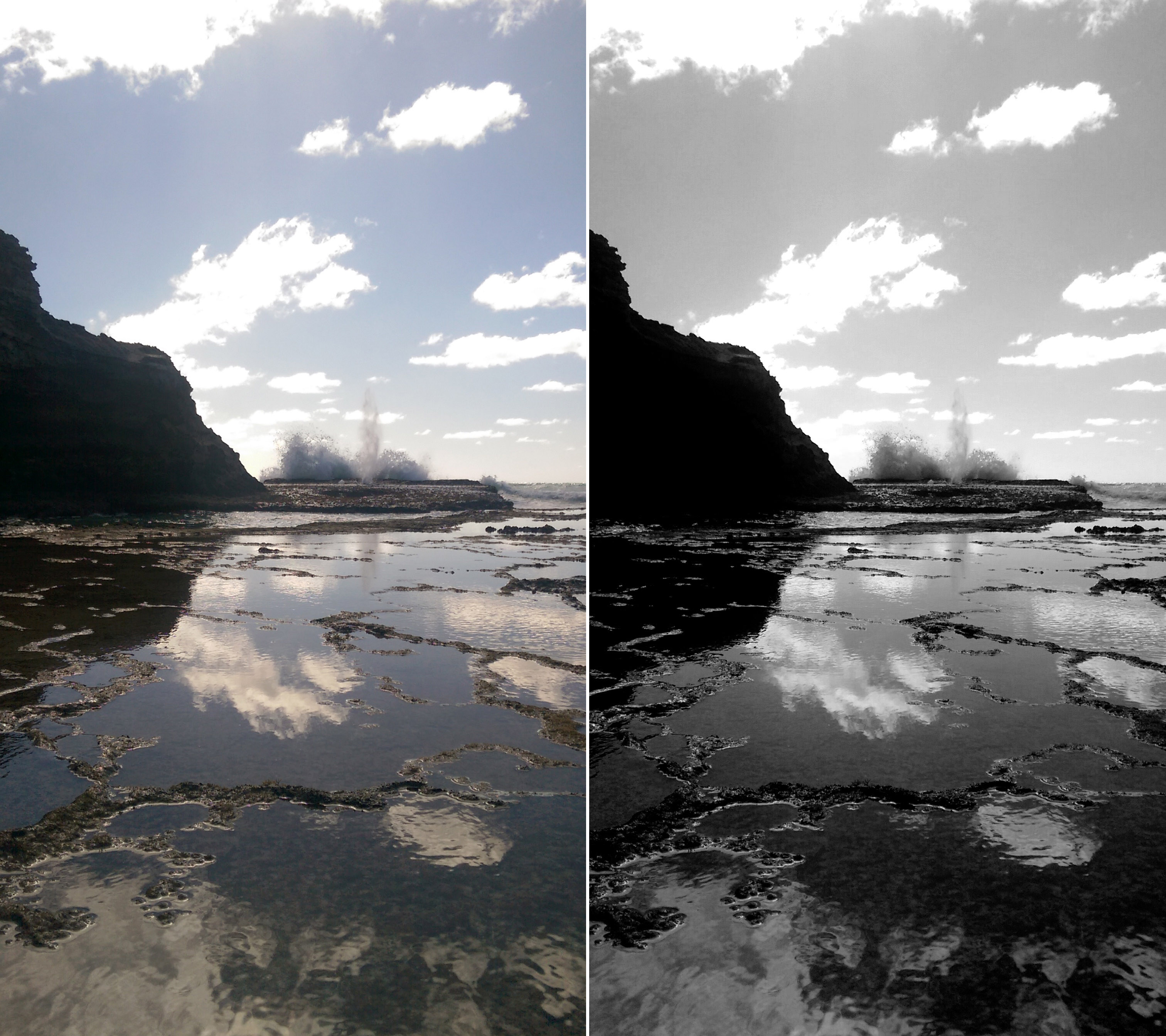 I used the 5 mega pixel front camera of the HTC One M8 to capture a higher quality landscape and opted for a black and white, dramatic feel.